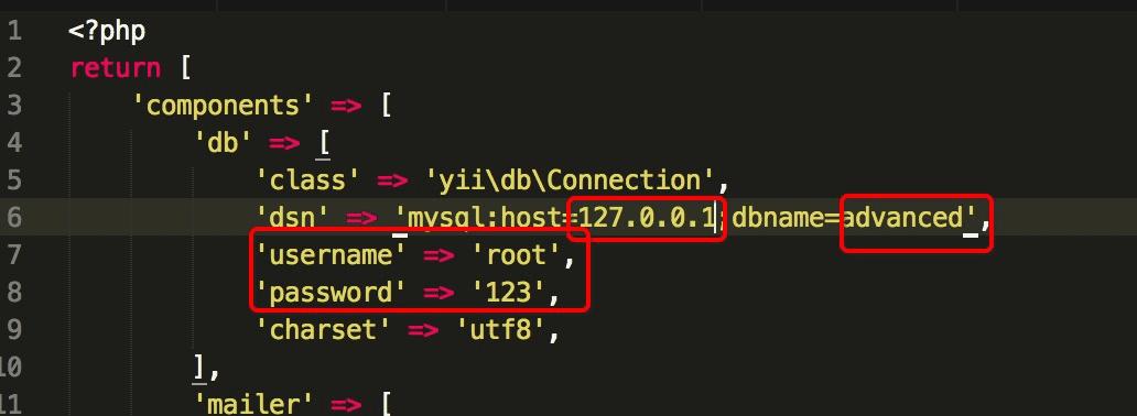 修改common/config/main-local.php 实际项目中本地的数据库往往跟线上数据库不一致,