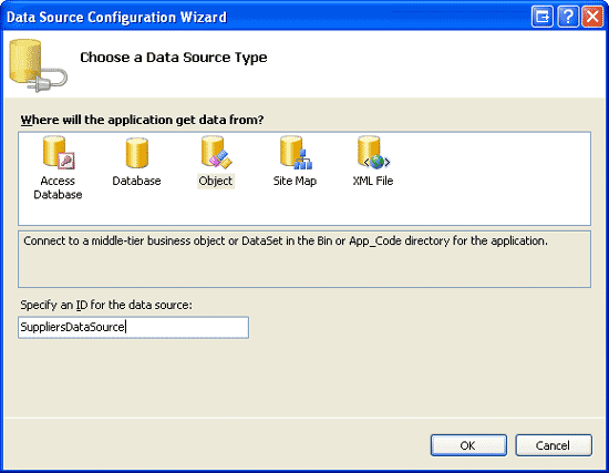 <asp:ObjectDataSource ID="SuppliersDataSource" runat="server"