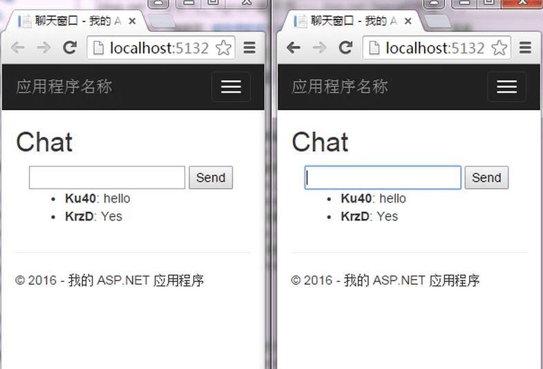 到此,我们的例子就实现完成了,接下来我们先来看看运行效果,之后再来解释到底SignalR是如何来完成广播消息的。运行的运行结果如下。