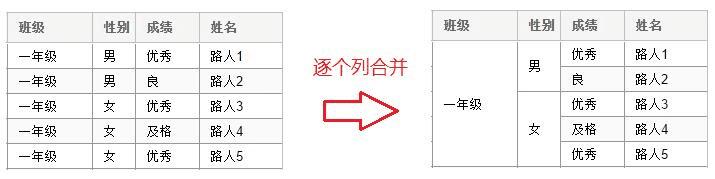 } else { // 3.2 逐个列合并:每个列在前面列合并的前提下可分别合并