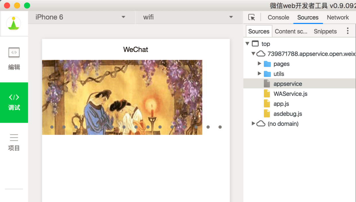 6.提示一下,在app.json中设置debug:true,这样控制台看到实时的交互信息,以及将来在js文件中设置断点,类似与Chrome的调试工具以及Firefox的Firebug。