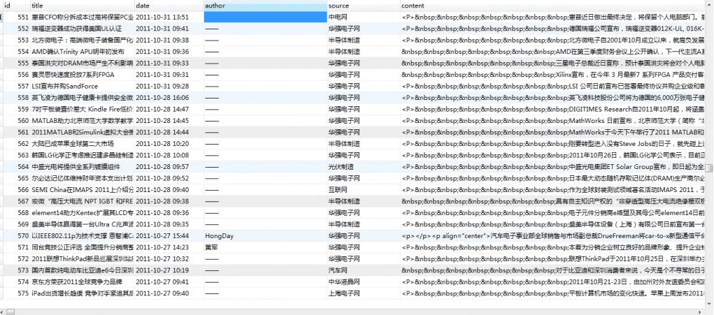 入口方法 init($min, $max) 如果想抓取 1-500 页面内容,那么 init(1, 500) 即可!这样,用不了多长时间,华强电子网的资讯就会全部抓取到数据库里面了。^_^