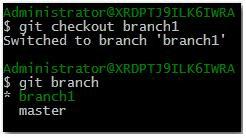 创建分支 : git branch 分之名称, 就可以创建一个分支, 创建完分支以后可以查看分支, 当前使用的分支会显示成为绿色, 前面带有 "*" , 如果不是当前使用的分支, 显示的是白色, 并且没有 "*" 前缀;