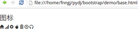 <h3>图标</h3> <span class="glyphicon glyphicon-home"></span> <span class="glyphicon glyphicon-signal"></span> <span class="glyphicon glyphicon-cog"></span> <span class="glyphicon glyphicon-apple"></span> <span class="glyphicon glyphicon-trash"></span> <span class="glyphicon glyphicon-play-circle"></span> <span class="glyphicon glyphicon-headphones"></span>