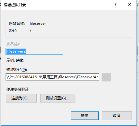 4.第一步所共享的文件,在文件服务器部署在IIS下WebApp中的一个文件下,以便暴露URL路径。因为你知道IIS除了使用文件读取的方式,是不可以获取父级文件夹中的任何内容的。