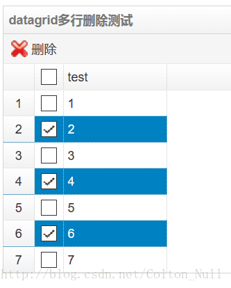 最近在前端界面开发中,使用了datagrid组件。需要完成一个多行勾选并删除的功能。