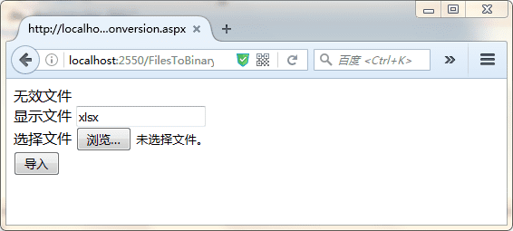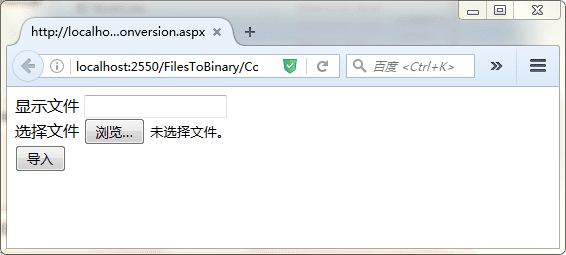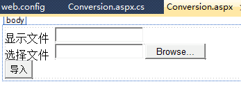 显示文件 <asp:TextBox ID="txtfilename" runat="server"> </asp:TextBox> <br /> 选择文件 <asp:FileUpload ID="FileUpload1" runat="server" /> <br /> <asp:Button ID="Button1" runat="server" Text="导入" OnClick="Button1_Click" />