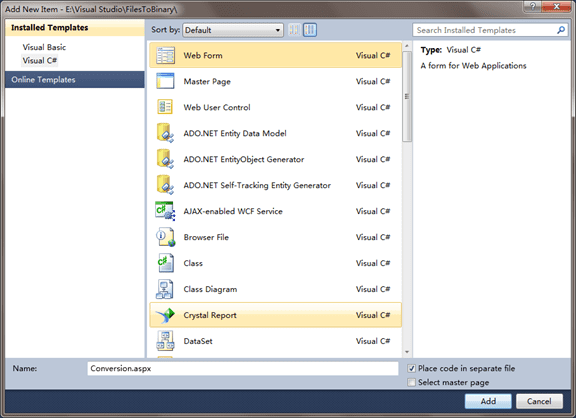 第三步:再添加一个新页面,命名为“Conversion.aspx”
