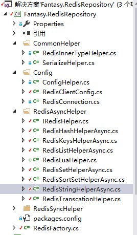 结构大概就是这样,RedisAsyncHelper下的所有类都是部分类,他们的类名称是RedisHelper。他们共同实现了IRedisHelper的接口,并且留下了详细的注释。
