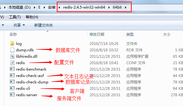 首先,咋们去这个地址下载安装文件https://github.com/dmajkic/redis/downloads,我这里的版本是:redis-2.4.5-win32-win64里面有32位和64位的执行文件,我这里服务器是64位的下面给出截图和用到部分程序的说明:
