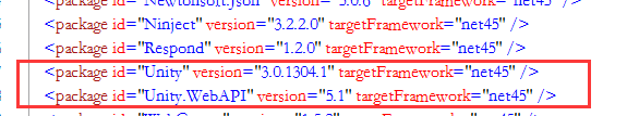 首先,安装Unity和Unity.WebAPI的nuget包,我这里的版本是:
