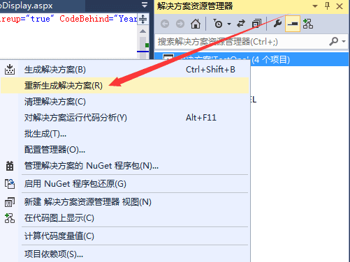 2.在其解决方案上右击弹出重新生成解决方案,以查看是否有错误