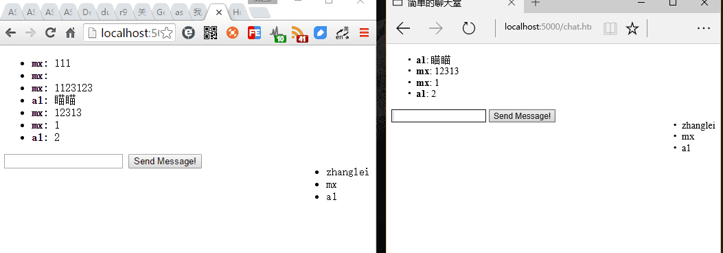 这里我们只实现一个小Demo,一个简单的聊天室,多个人进入可以看到各自发送的信息: