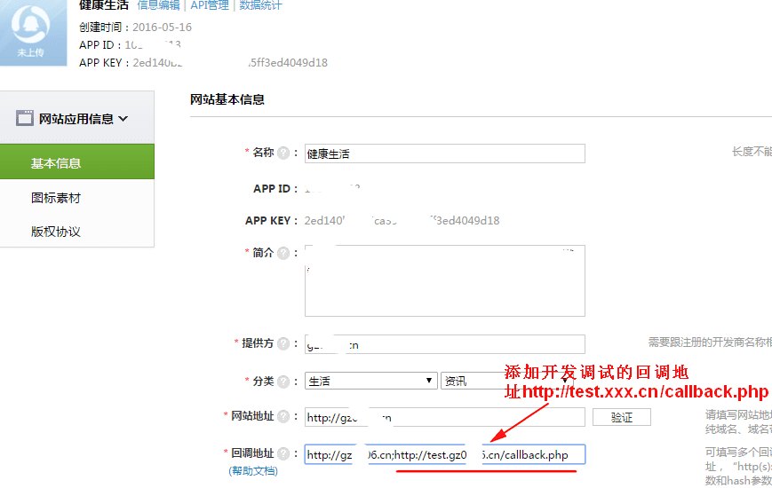 添加测试回调地址
