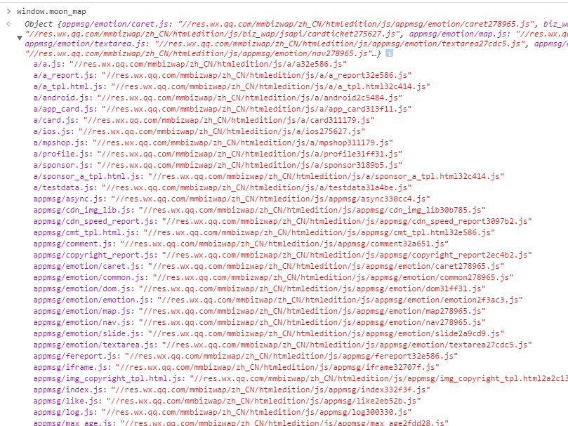 可以看出,微信使用的是自己开发的脚手架moon.js,在这个网页中的实际文件名是moon32ebc4.js。