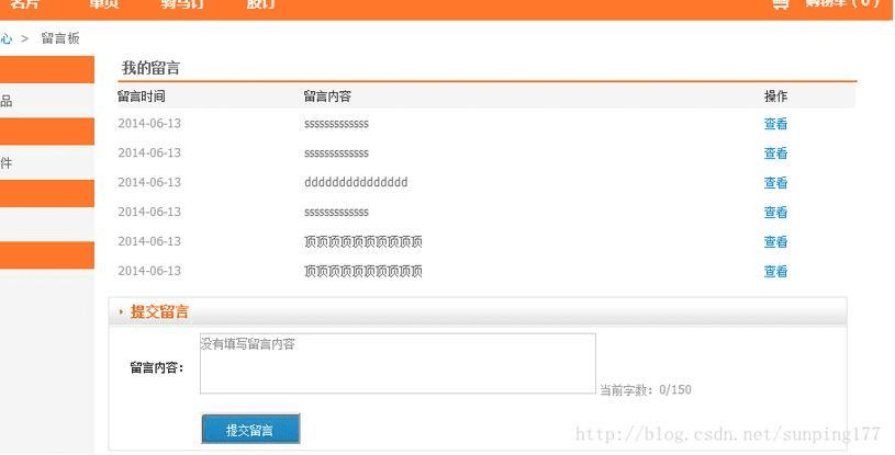 这是留言板的界面,当用户点击提交留言的时候,自动提交到我的留言下面