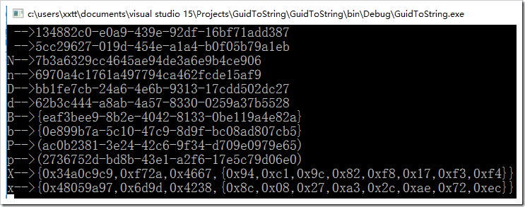 Console.WriteLine(" -->" + System.Guid.NewGuid().ToString());