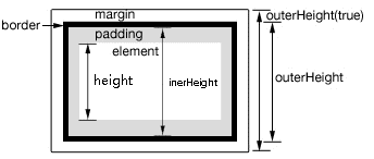 innerWidth()/innerHeight():获得包括内边距(padding)的元素宽度/高度,不包括边框;
