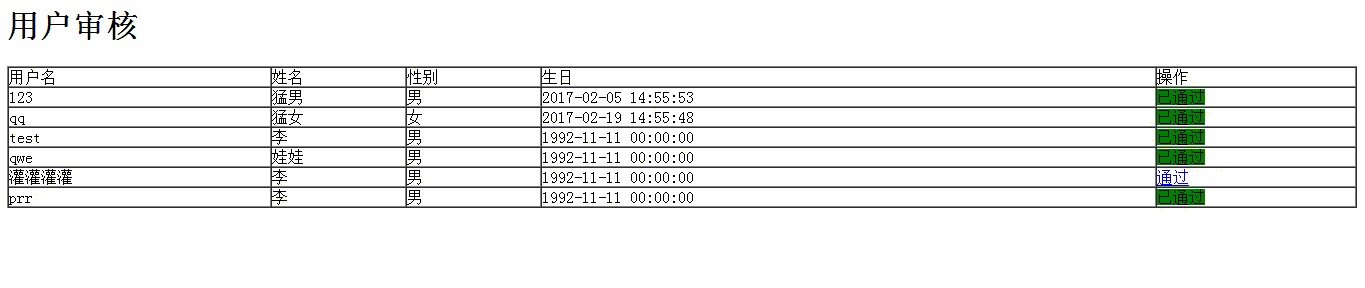 用户注册后就有该条用户记录,你对用户表设一个“审核状态”字段,默认值设为“未审核”,然后你写几句审核代码做成一个功能,按照你们的意愿若审核通过你把审核状态改为“已审核”就行了。用户想进行各种操作时,你先判断一下审核状态字段,若未审核则阻止并给出一些提示信息,否则放行。