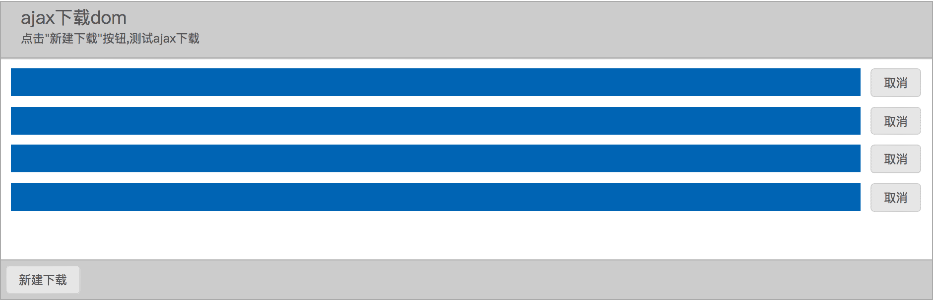 浏览器对下载的支持基本上已经能满足我们的需求,一般场景下再探索其他下载方式意义不大。但是还是有些场景是浏览器下载不能满足的,比如要求我们的web应用对下载进度的进行监控,或者下载完成后触发特定事件,或者web应用可以自动取消下载过程,或者使用worker创建一个后台运行的下载等等。对于以上情况我们都可以采用基于Blod对象的ajax下载。