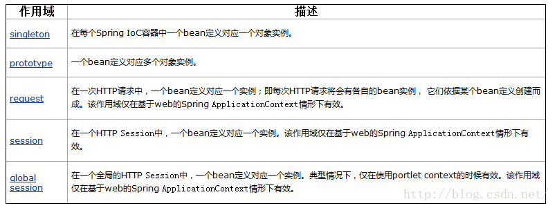 此取值表示容器中只存在一个实例,所有引用该bean都是单一实例。这个就是典型的单例模型。
