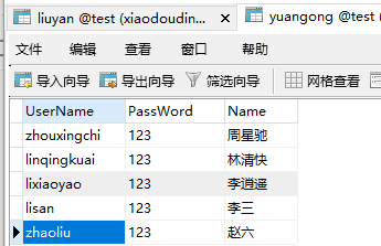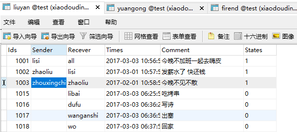 3.登录完成后是进入主页面,也就是显示自己收到的对话内容,下面是设计的数据库的表格和主页面的代码: