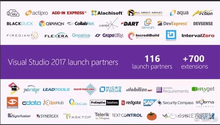 最后,微软感谢了自己的合作伙伴,感谢他们开始了对Visual Studio 2017正式版的支持。