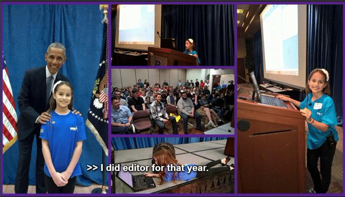 自动忽略了大人,焦点集中在小女孩身上,才几岁年级,已经有项目开发经验,受过Obama接见,开过自己的Session,够强悍!