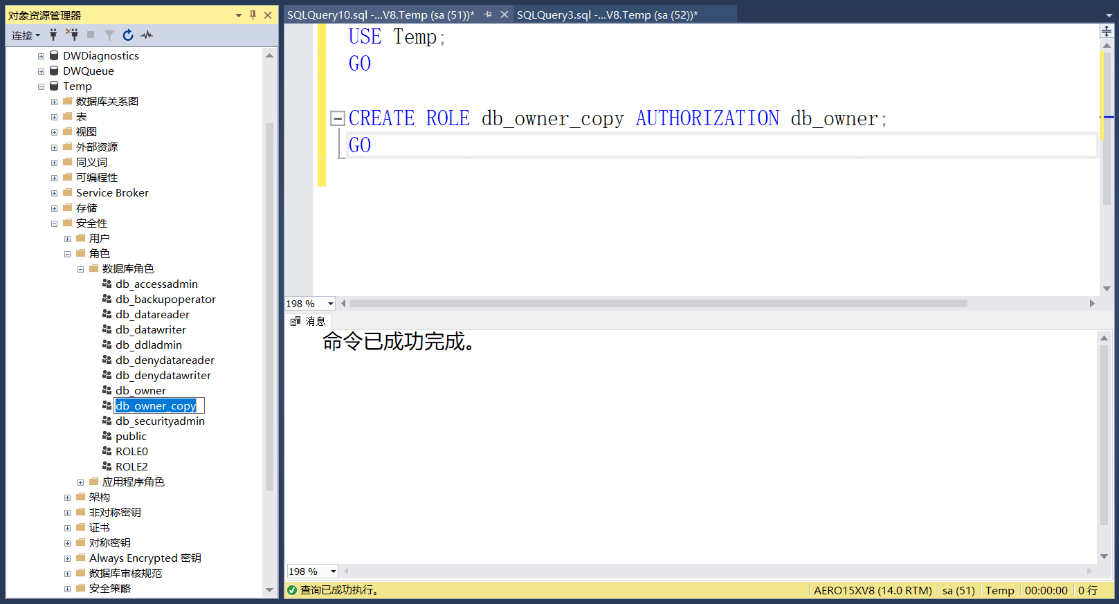 CREATE ROLE db_owner_copy AUTHORIZATION db_owner;--以db_owner为基础创建一个数据库角色;