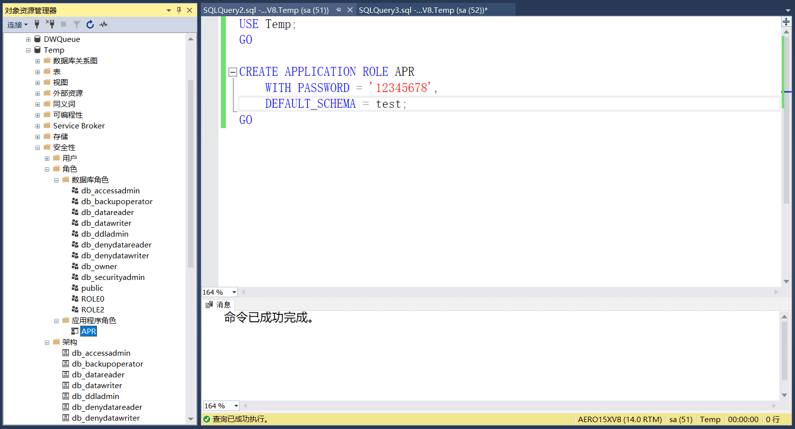 如下图,可以看到数据库角色建立完成: