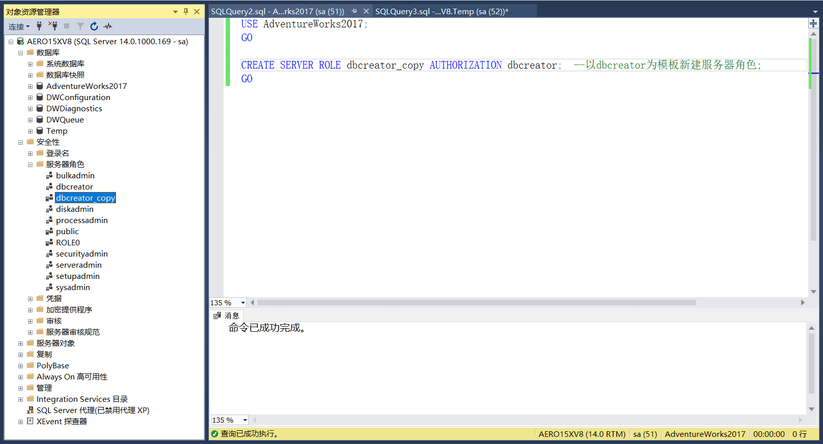 首先理解服务器角色是服务器级别的主体,它们具有一些操作权限,操作范围是整个服务器.