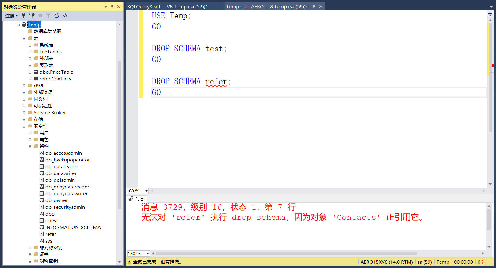 注意: 和服务器角色一样,不允许对含有用户的数据库角色进行删除.