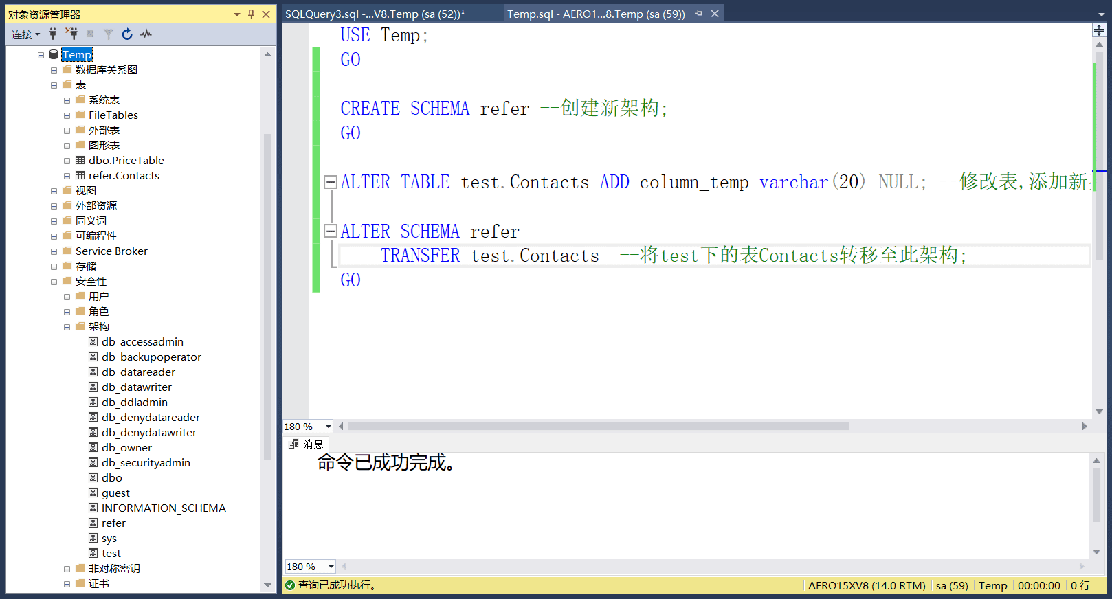 注: 上面的代码设定了默认架构,如果不设定,则默认使用dbo架构.