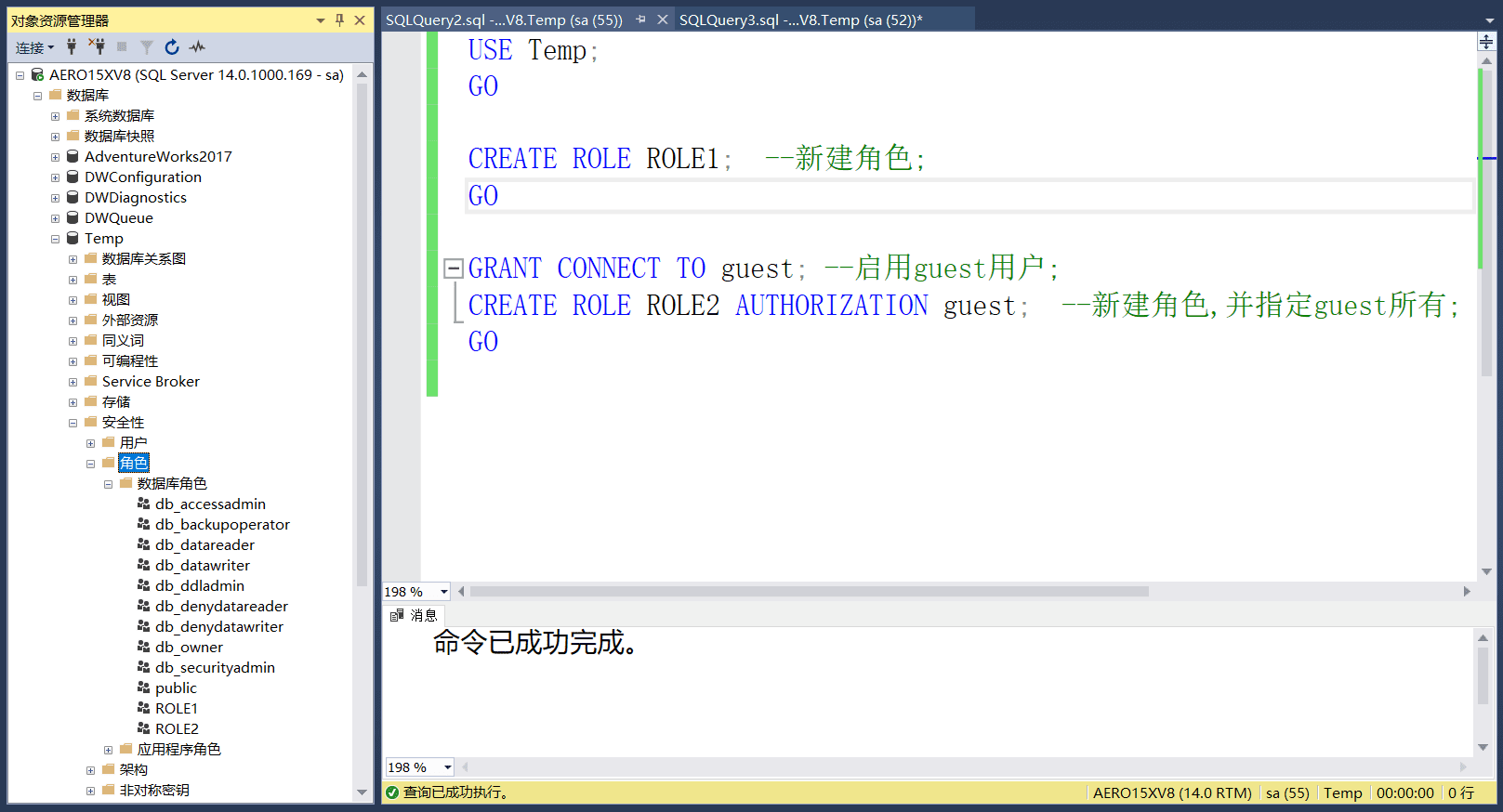 CREATE ROLE ROLE2 AUTHORIZATION guest;--新建角色,并指定guest所有;