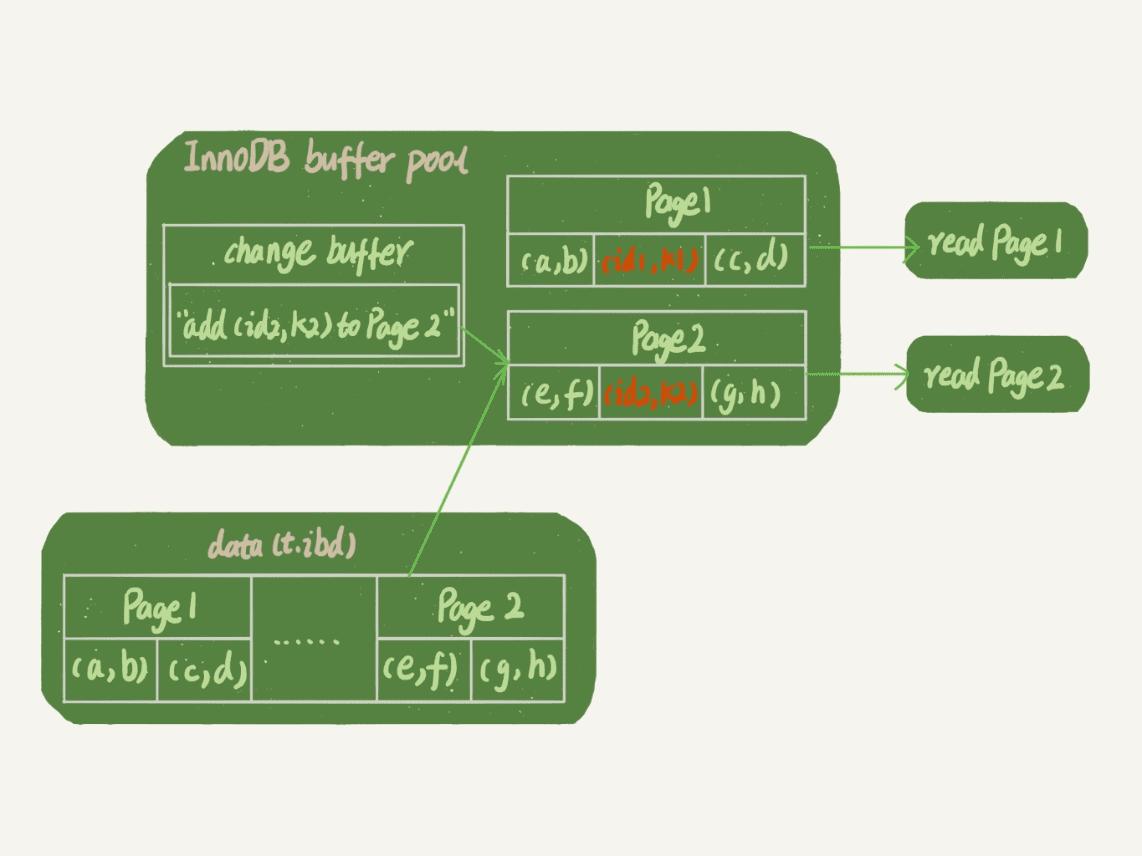 - Page2没有在内存中,就在内存的change buffer区域,记录下"我要往Page2插入一行"这个信息。