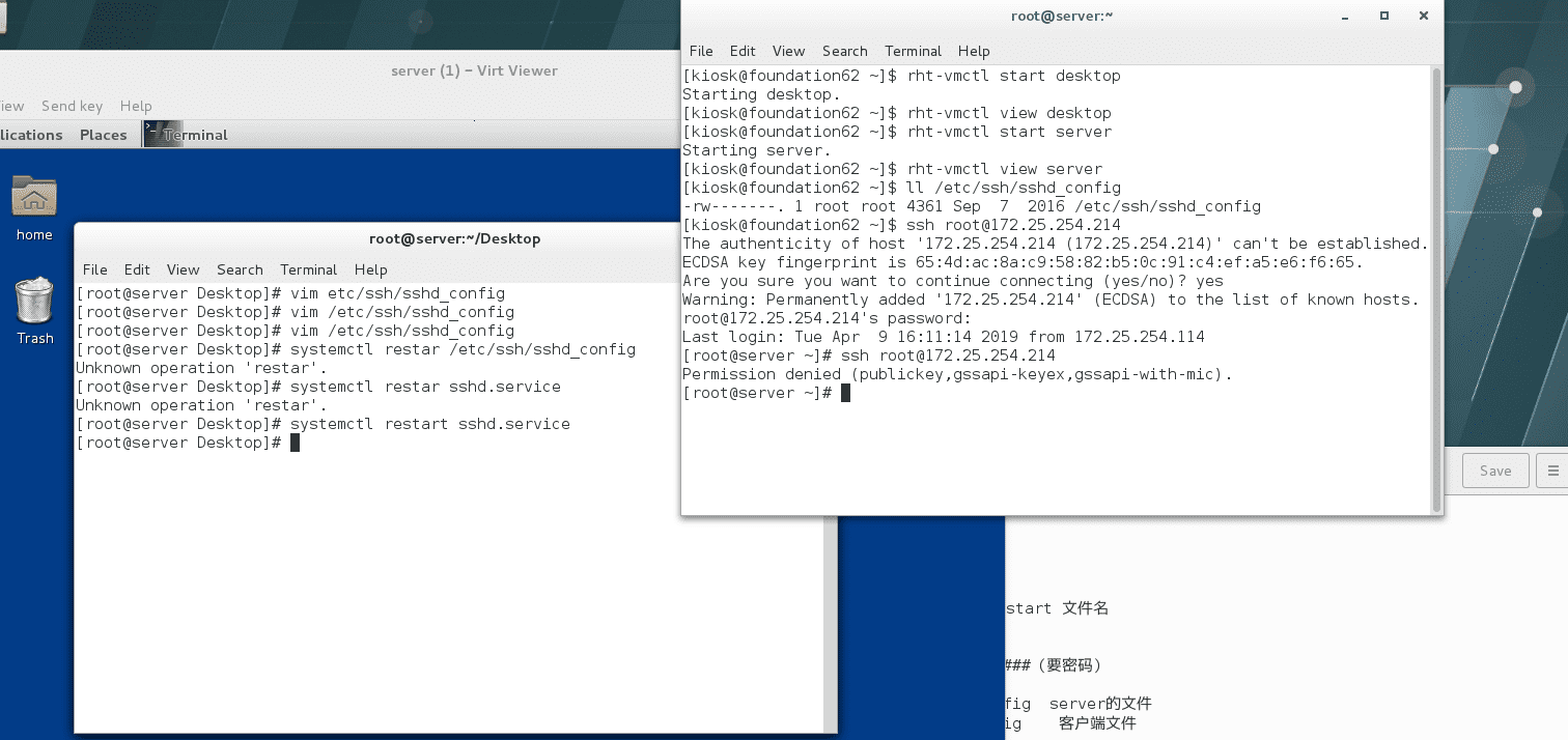 在客户端连接不用输入任何东西都能连上就好了ssh root@172.25.254.214(在客户端中ls -ld /root/.ssh看有没有文件目录,ls -l /root/.ssh/看有没有钥匙文件)