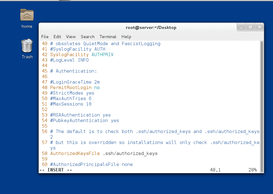 set nu 边上号码,找到48行,将permitRoot 改为no