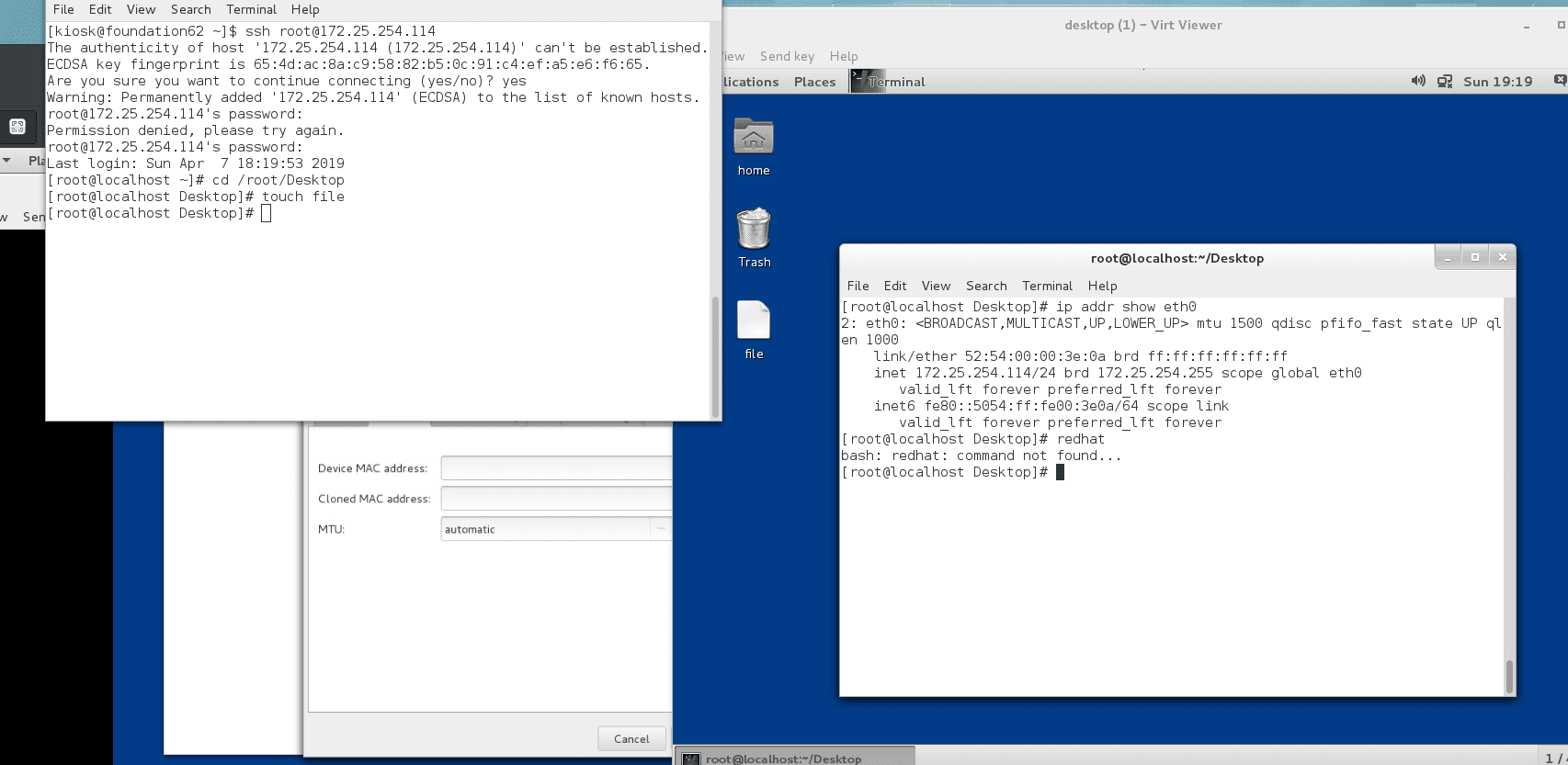 用一个虚拟机连另一个,ssh root@172.25.252.224