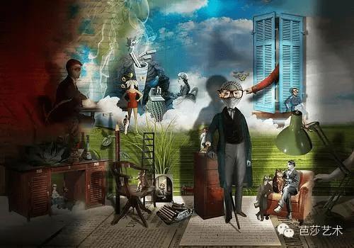 Casajordi一般通过PhotoShop的图层堆迭创作——为了充分表魔幻风格,时常将图层开超过300个,平均制作的时间将近16个小时,因此,在细节都能看到幽默之处。