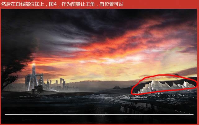 4、在白线部位加上素材4作为前景,让主角有位置可站。