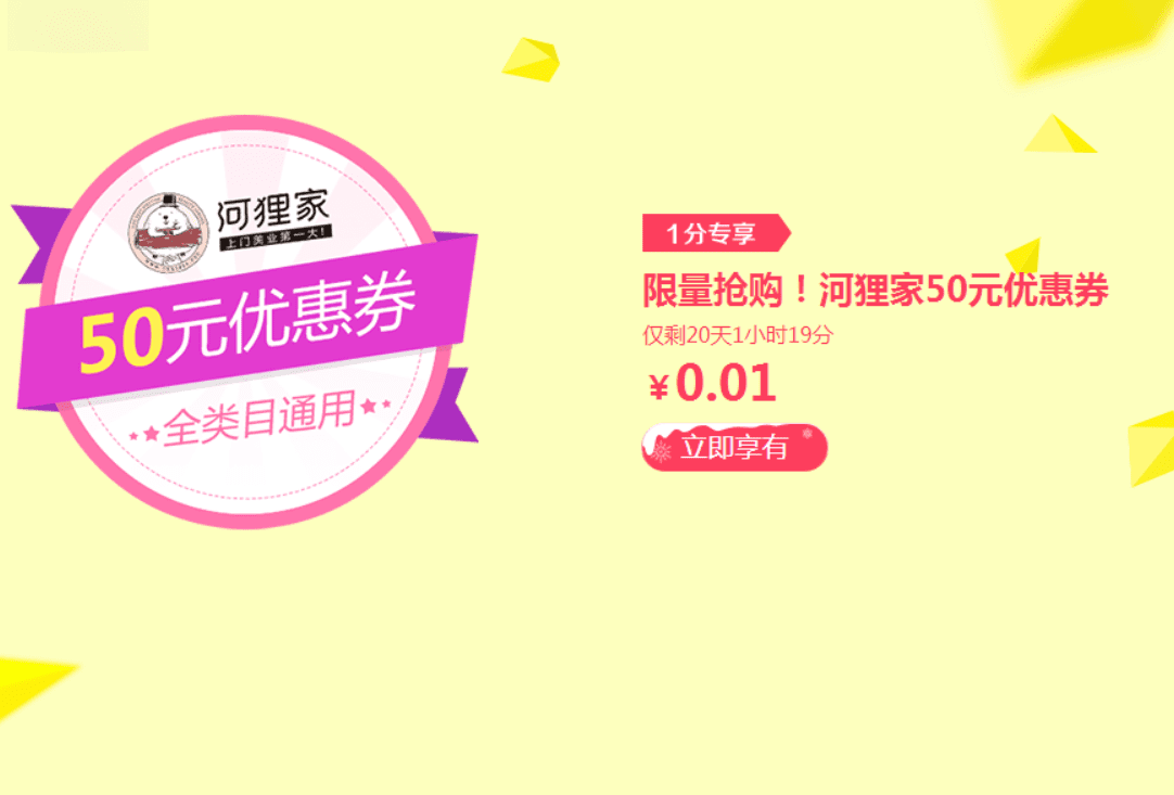 05.一分钱专享限量抢购!河狸家50元优惠券,