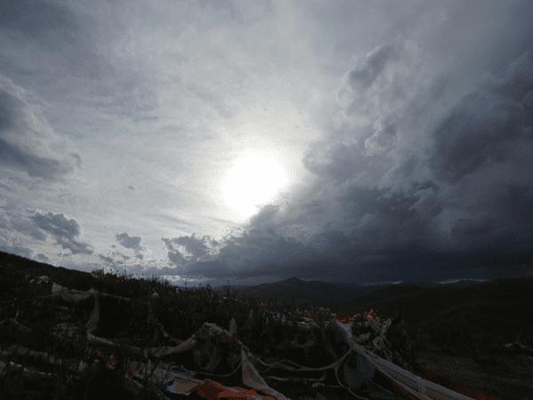 3、加上我们自己找的天空素材,这里找的天空找偏阴天的,云彩可以稍微多一些,深远一些。便于后期氛围的营造。