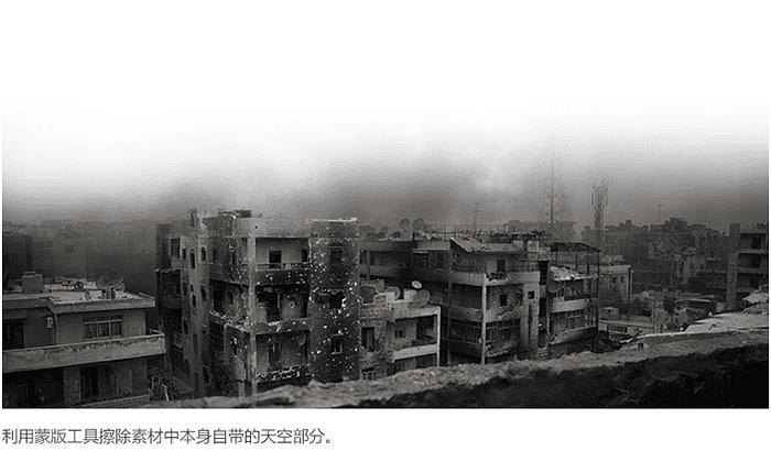 2、利用蒙版工具擦除素材中本身自带的天空部分。
