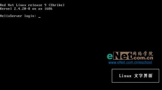 点击“退出”后系统自动重启,随后便进入Linux的登陆画面。敲“回车”选择进入。