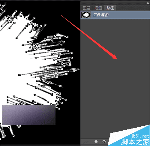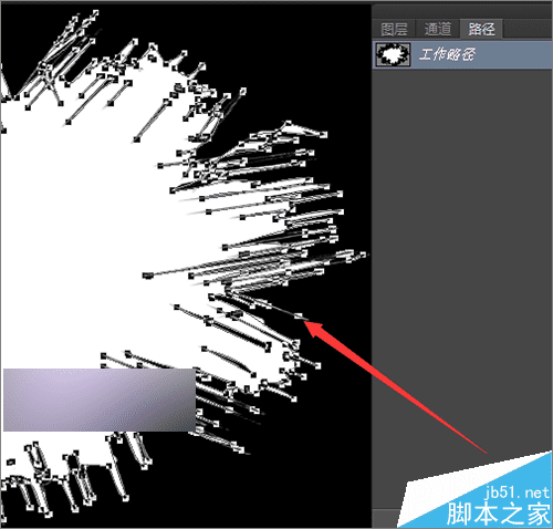 5、把它做出选区之后,点击路径面板,然后再点击路径面板下面的从选区生成工作路径。把中间需要的部分生成工作路径。然后再把它定义成形状。