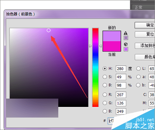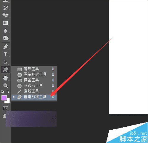 8、接着把前景色选择一个自已喜欢的颜色。这里就选择这种紫色。选择好颜色之后,点击确定。接着再点击工具上面的自定义形状工具。