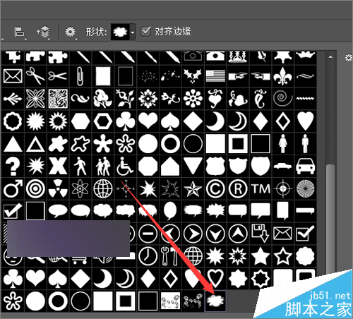 9、点击打开形状的面板,选择之前定义好的形状。当在画布上画好之后,可以看到这就是之前遮罩的形状。然后就可以用自已想要做效果的图片上面进行制作。