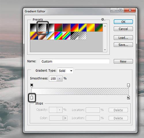 7、因为你只是想调整图片最上层的部分,所以我们需要渐变工具对其进行适当的调整。 首先我们要打开渐变工具,选择线性渐变 。然后调整渐变工具的设置。设置如图所示:选择白色#FFFFFF。