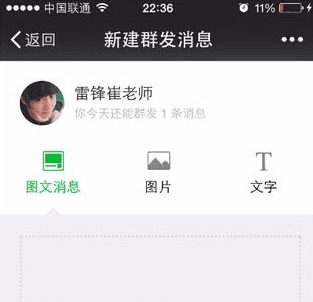 7、点击了【群发】后,系统就会进入到【新建群发消息】的界面,用户按照在电脑版的操作进行就可以了。