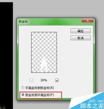 六、在上面的菜单栏中选中的滤镜→扭曲→极坐标,勾选极坐标到平面坐标;之后得到得效果如图